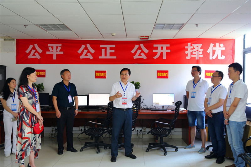 唐未兵逐一到录取组长机房、录取组员机房、通知书签发室和现场咨询室等招录工作现场进行查看,并亲切慰问了在场的工作人员。