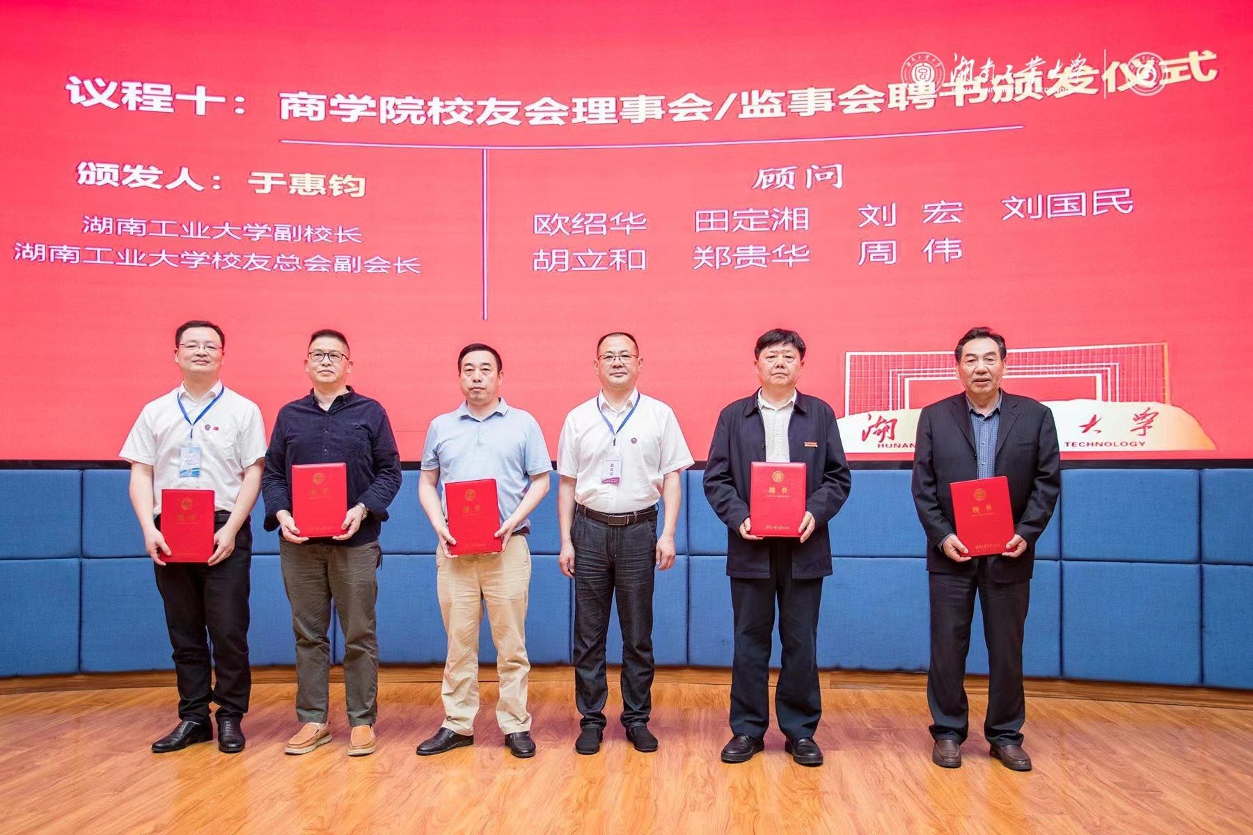 通过表决,欧绍华等7人当选第一届理事会顾问,商学院行政负责人、工管99级校友王欢芳当选第一届理事会会长,湖南电气职业技术学院院长、企管82级校友李宇飞,冷水江钢铁集团有限公司总经理、企管84级校友曹革新,中国联通湖南分公司党委委员、副总经理、营销94级校友陈小敏,株洲市委副秘书长、中师97班校友刘继承,华传文化传媒集团董事长、营销98级校友刘兵5人当选第一届理事会常务副会长,企管82级候季等37位校友当选第一届理事会副会长,张伟被选为第一届理事会秘书长,工管08级徐菲菲等4位校友当选第一届理事会常务副秘书长,营销08级袁军等19位校友当选第一届理事会副秘书长,谭辉当选第一届监事会监事长,周伟、阳桂根当选监事。