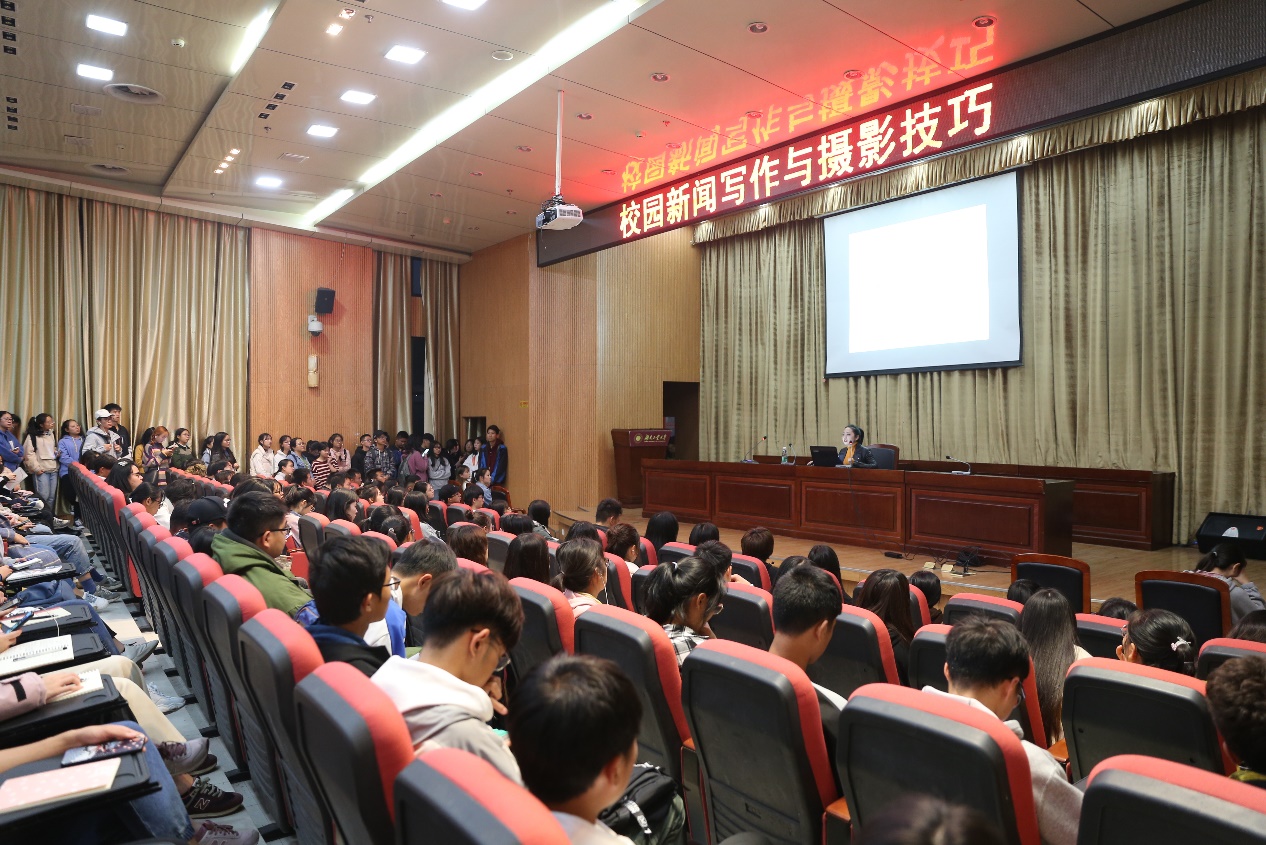 “宣传工作不只是宣传部的事,学校应开启‘全员宣传’模式”。11月24日晚,三湘都市报科教事业部主任、首席记者黄京应邀来德赢作“校园新闻写作与摄影技巧”专题讲座。学院媒体负责人、校园媒体记者等400余人参加。崇德楼一楼报告厅座无虚席,报告厅两侧挤满了听课学生,场面异常火爆。