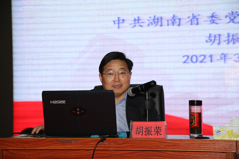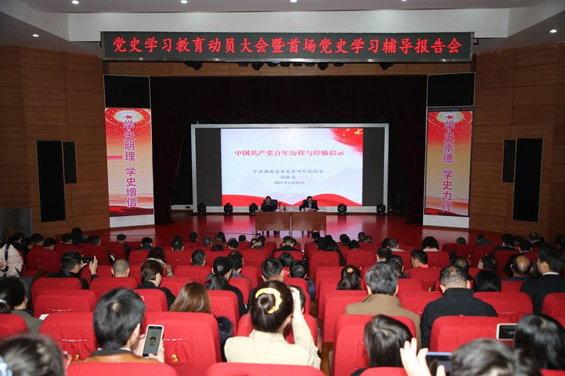 3月23日下午,应学校邀请,中共湖南省委党史研究院院长胡振荣教授来校,在音乐学院报告厅为德赢师生作首场党史学习教育专题辅导报告。本场报告的主题是《中国共产党百年历程与经验启示》。党委副书记王利华主持报告会,在校校领导、副处以上干部、部分师生党员代表共300余人聆听了报告。