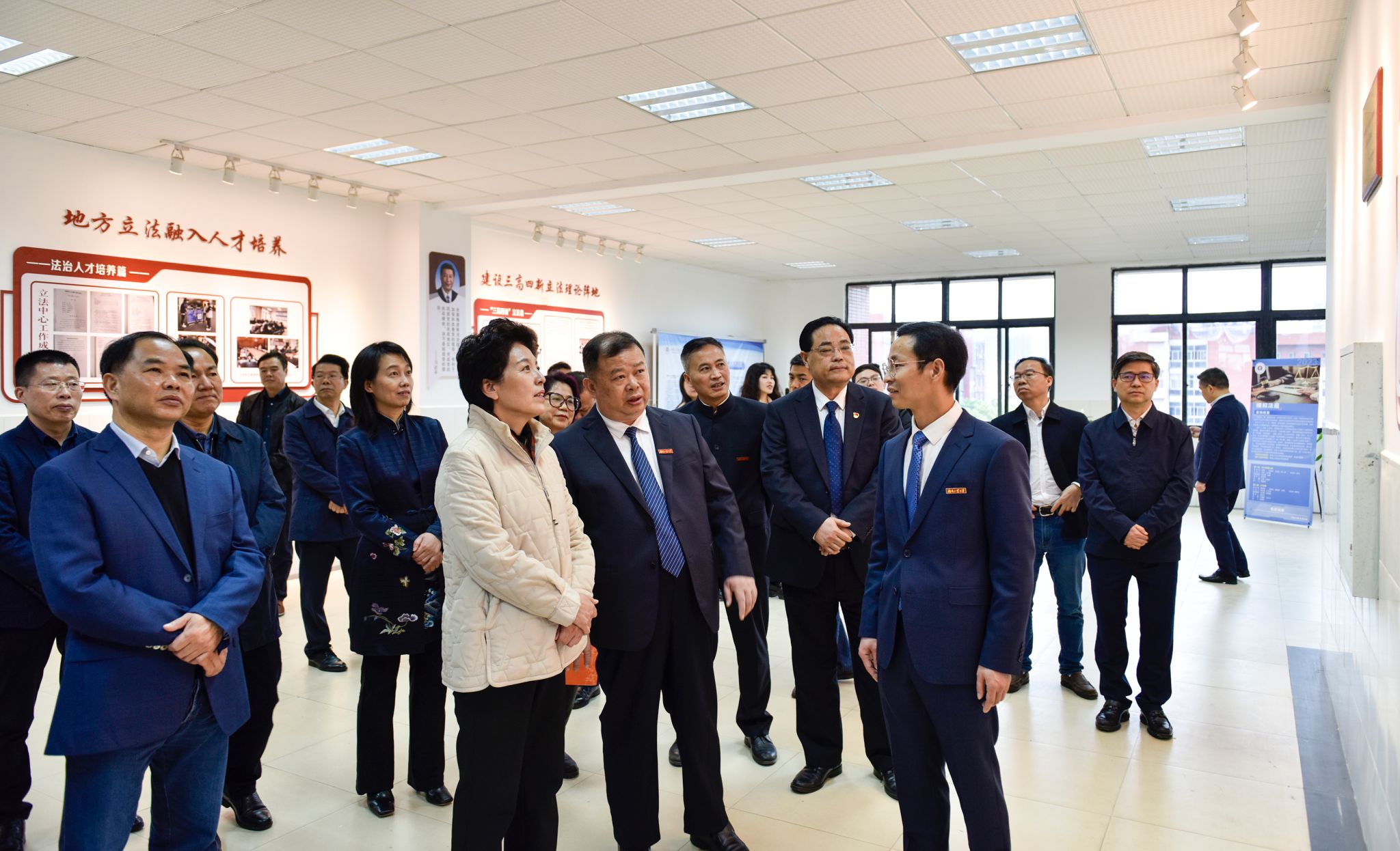 4月6日下午,省人大常委会党组书记、副主任乌兰专程来到德赢,主要就地方立法融入人才培养进行专题调研。省人大常委会联工委主任程水泉、省人大常委会研究室主任王向前、省人大常委会信访办主任、办公厅秘书处处长李向军、省人大常委会联工委代表联络处处长刘海娥,市人大常委会主任刘光跃、市人大常委会党组副书记、副主任钟燕、市人大常委会党组成员、秘书长兰军,校党委书记刘望、副校长佘朝文、纪委书记张亚东陪同调研。