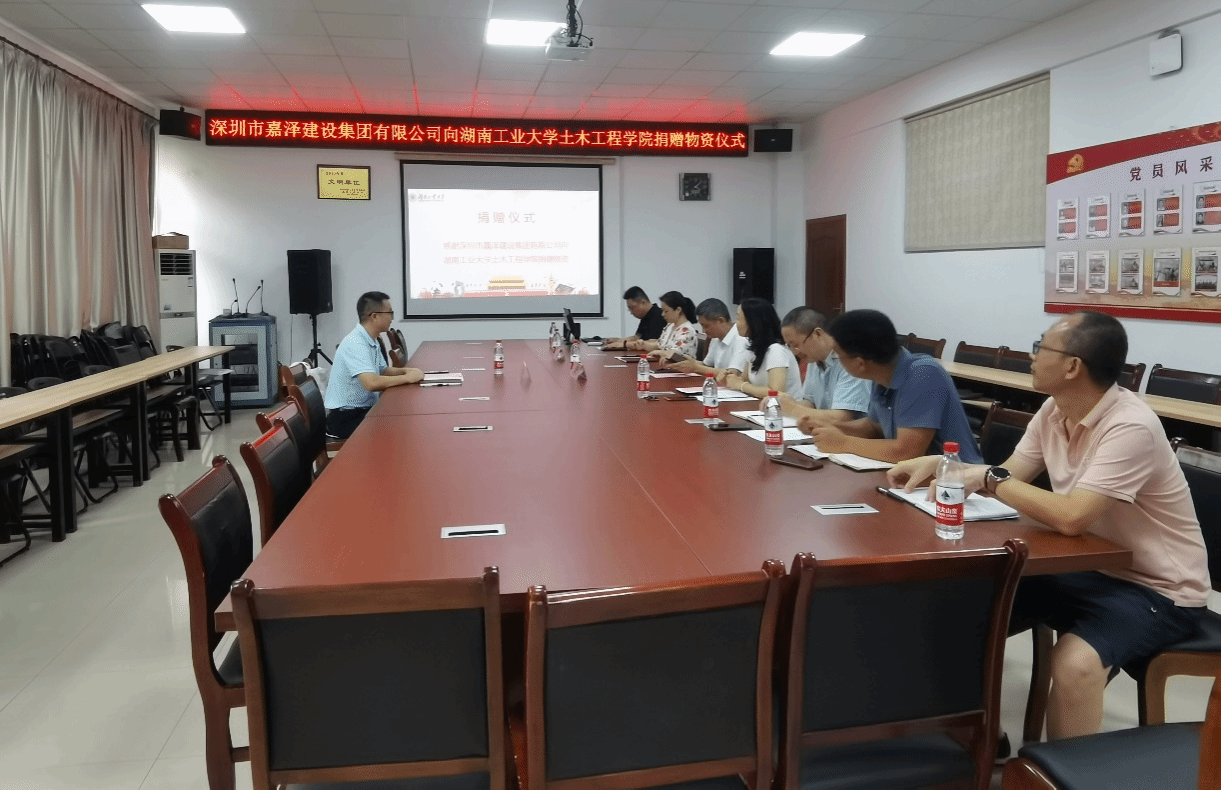 8月26日,深圳市嘉泽建设集团有限公司(以下简称“嘉泽建设集团”)捐赠仪式在土木楼205举行。副校长龙永红,嘉泽建设集团代表王世兴,校友会、土木工程学院相关负责人等参加。