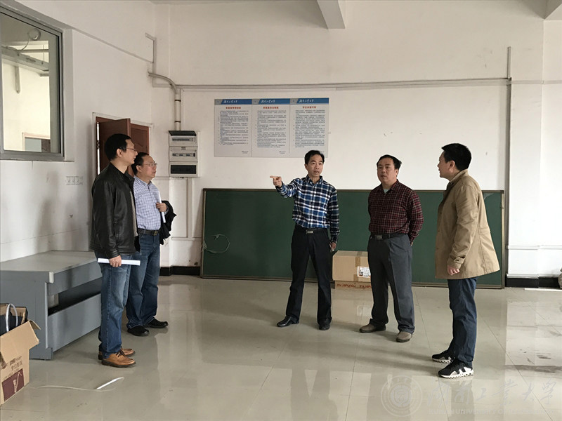 日前,副校长王利华率基建处负责人到机械工程学院现场办公,帮助解决学院教学、会议及活动等相关场地的维修改造问题。