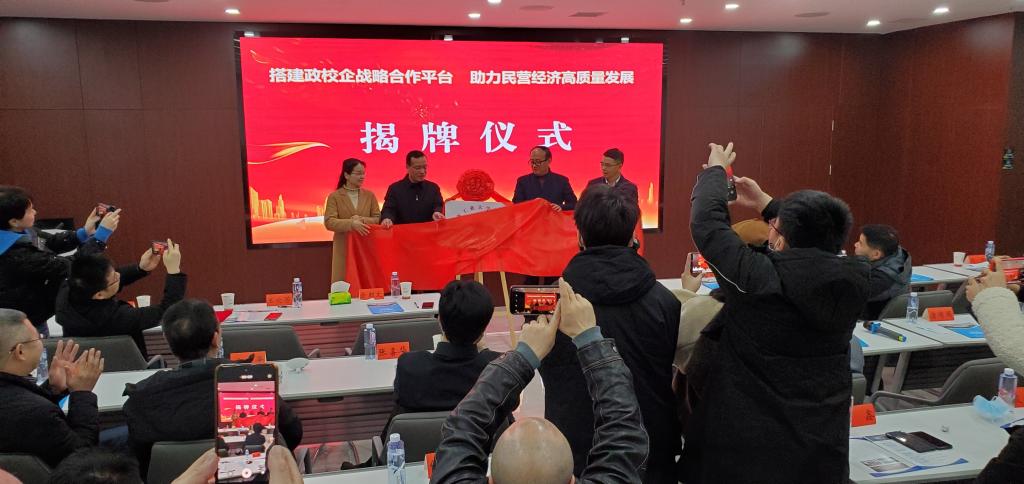 1月21日上午,商学院产学研基地签约、揭牌仪式在株洲市商协会中心、株洲高新区商会服务中心举行。副校长佘朝文,株洲市工商联党组成员、副主席石强,天元区委常委、统战部部长袁哲明等相关领导出席,商学院及相关部门负责人,株洲市商协会中心各协会会长及企业代表参加,天元区统战部副部长、区工商联书记刘江云主持仪式。