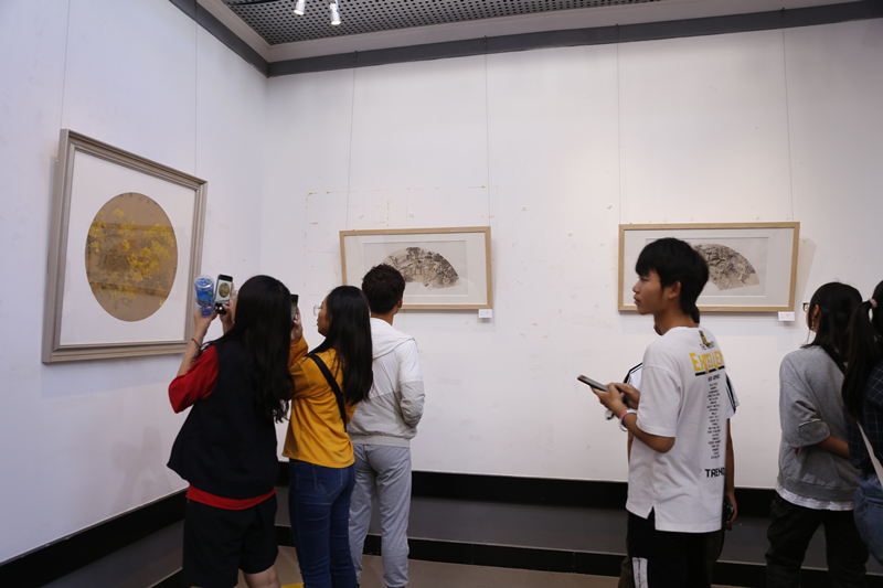 刘扬宣布“我和我的祖国”书画·摄影·视频·设计创作展开幕。随后,到场领导和师生共同欣赏了艺术作品。