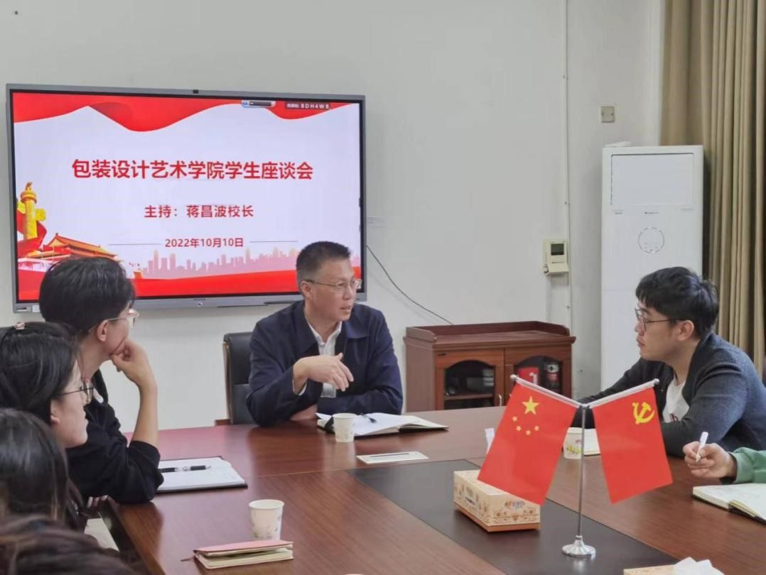 10月10-11日,校长蒋昌波赴包装设计艺术学院调研,用两个下午的时间分别召开了青年教师能力提升和学生成长成才座谈会,学院青年教师代表和学生代表共计20余人参加座谈。