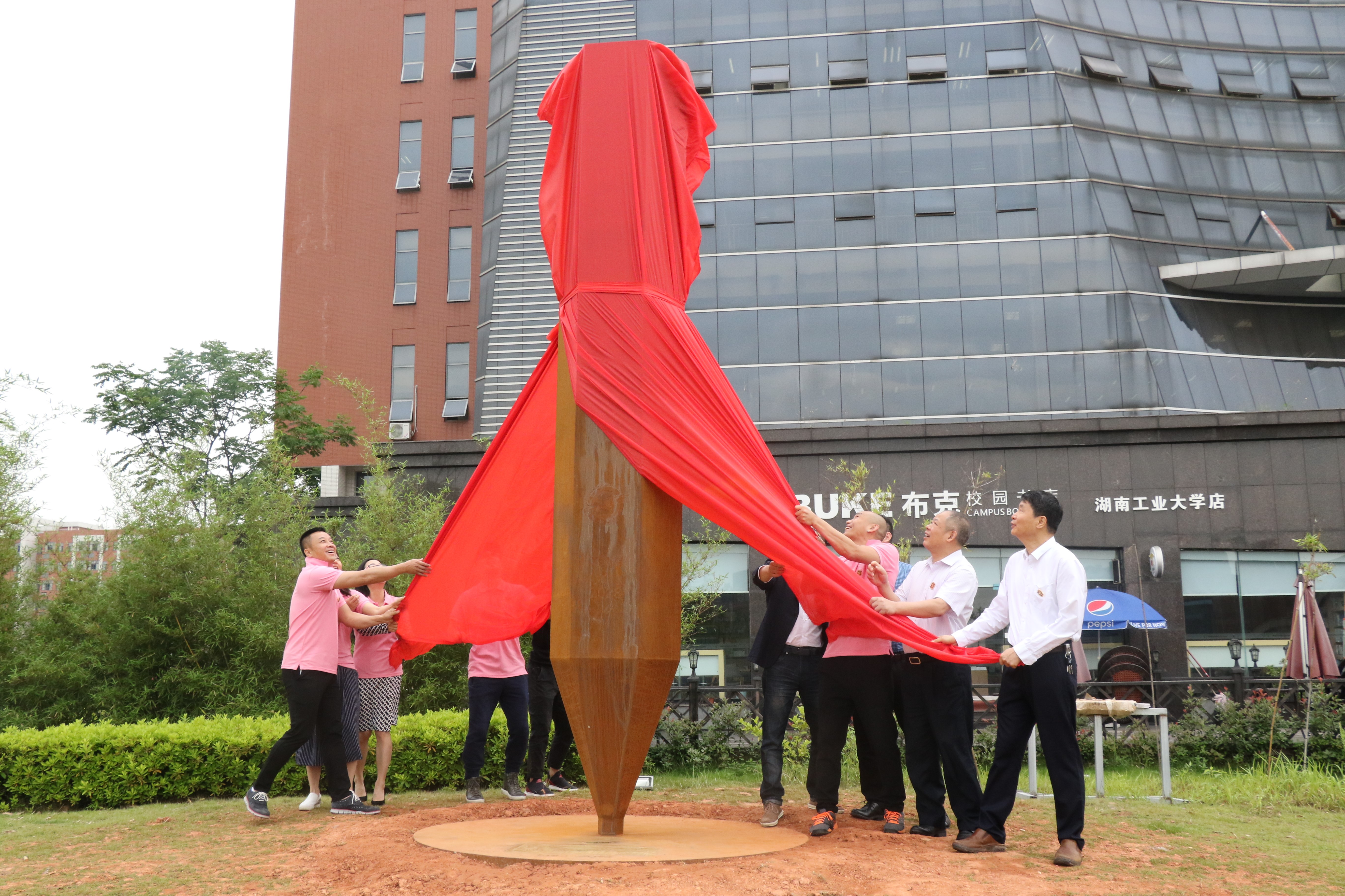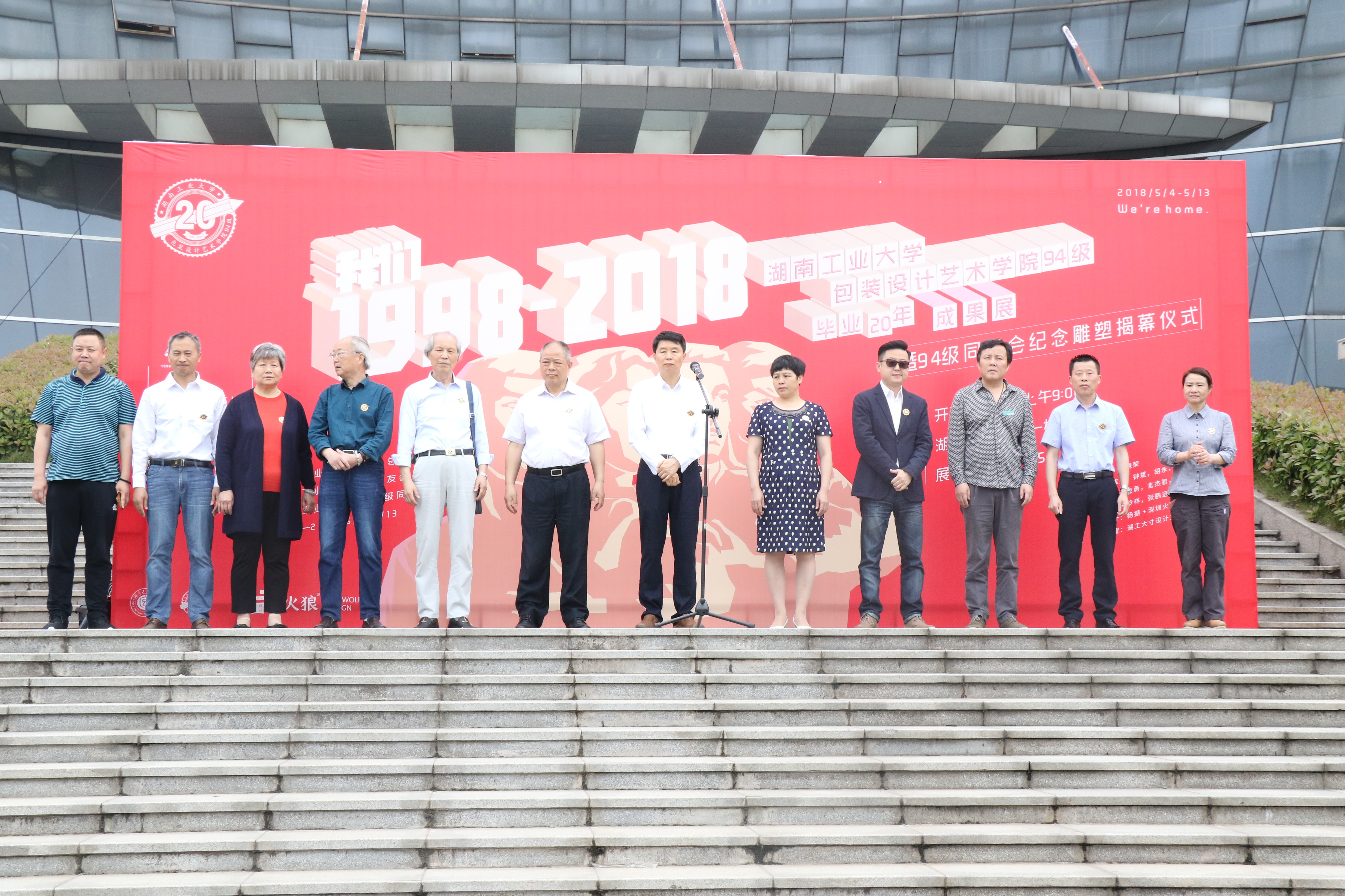 包装设计94级校友捐赠了一座集体设计的雕塑《我们》,校领导、嘉宾及校友代表共同为塑像揭幕。