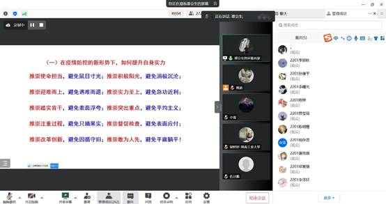 在讨论交流环节,收集学生在防疫期间备战考研、开展就业等方面的困难,老师们逐一耐心细致地进行解答,并积极调动资源为大家学习备考提供支持和帮助。