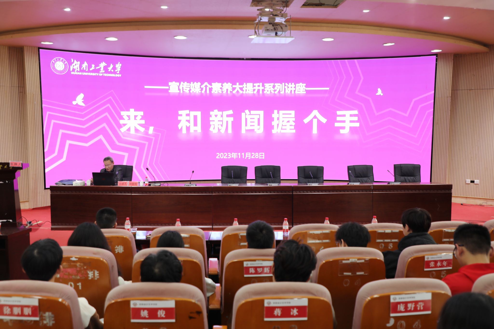 11月28日下午,“宣传媒介素养大提升专题系列讲座”在崇美楼129报告厅开讲。株洲日报主任记者钟联明应邀主讲,宣传统战部负责人主持讲座。此次讲座采取“现场培训+直播”的形式进行,各学院代表二百余人在现场聆听,同时进行线上同步直播。