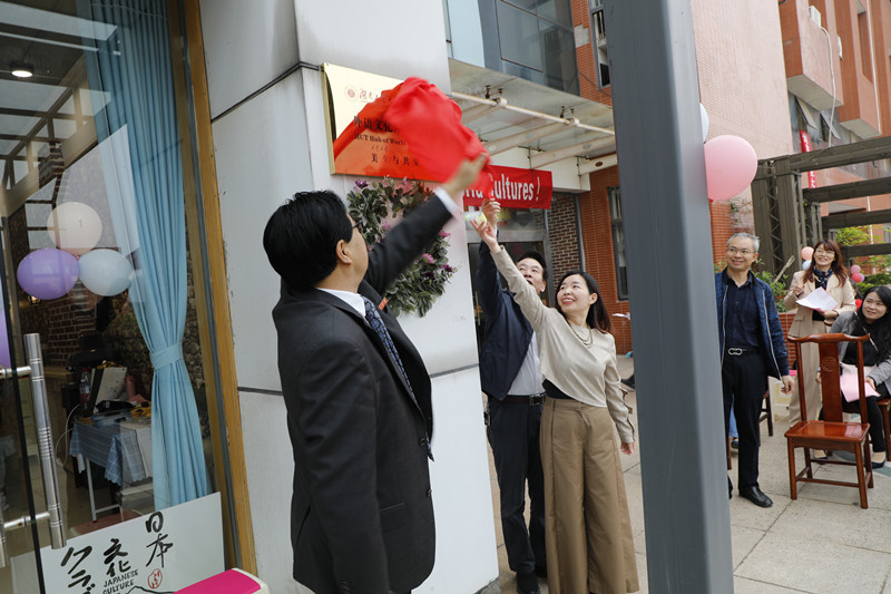 仪式上,校领导韩清波、张亚东以及外国语学院负责人共同为外语文化体验中心揭牌。