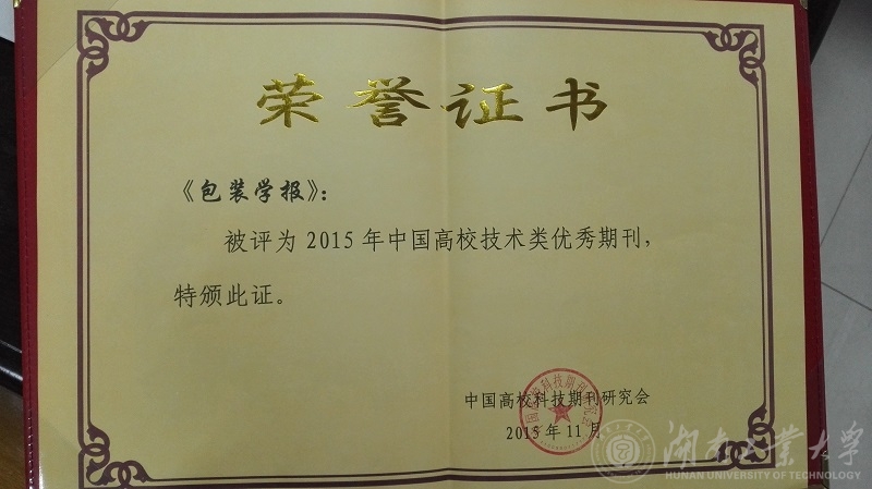 近日,中国高校科技期刊研究会第19次年会在昆明召开,期间宣读了2015年中国高校科技期刊研究会技术类期刊优秀期刊、优秀栏目、优秀编辑学论著和特色栏目的评选结果,并颁发了证书。德赢《包装学报》喜获“2015年中国高校技术类优秀期刊”荣誉称号。