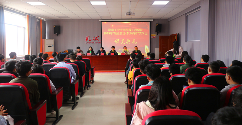 4月16日上午,机械工程学院在崇真楼举行2019年“领益智造-东方亮彩”奖学金颁奖典礼。校党委副书记韩清波出席,“领益智造-东方亮彩”精密技术有限公司人力行政中心总监欧耀林、学生工作部(处)相关负责人、学院领导班子成员、学生辅导员、获奖学生等参加典礼。