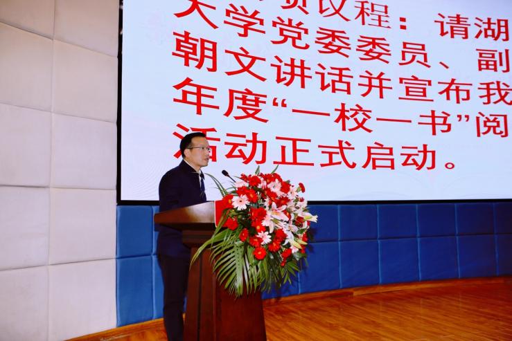 佘朝文讲话。他强调,要把开展读书活动作为一件大事来抓,引导学生爱读书、读好书、善读书。他指出要高度重视阅读推广,努力建构阅读推广新机制,把阅读与写作有机结合起来。他希望,广大师生通过阅读获得人生智慧启迪、培养理想情怀、汲取前行力量。