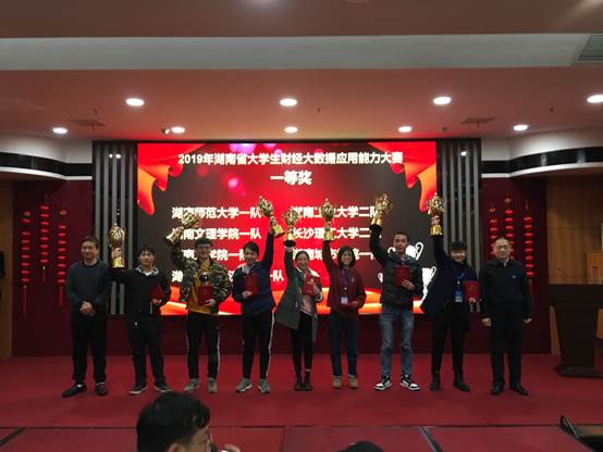 据悉,大学生财务大数据应用能力大赛是由湖南省教育厅主办的A级赛事。此次比赛共有来自全省37所本科高校的66支队伍参赛。比赛共产生一等奖7个、二等奖13个。