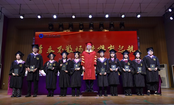 校长蒋昌波为毕业生逐一拨穗正冠、授予学位证书。毕业生们与校长握手、道谢、拥抱,并合影留念。