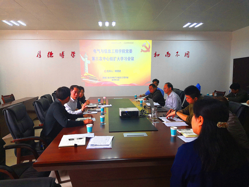 4月18日,电气与信息工程学院举行党委中心组(扩大)学习,邀请校党委副书记韩清波作了题为“增强忧患意识、提高防范能力”的中心组学习辅导,党委委员及各党支部书记参会,学院党委负责人主持。