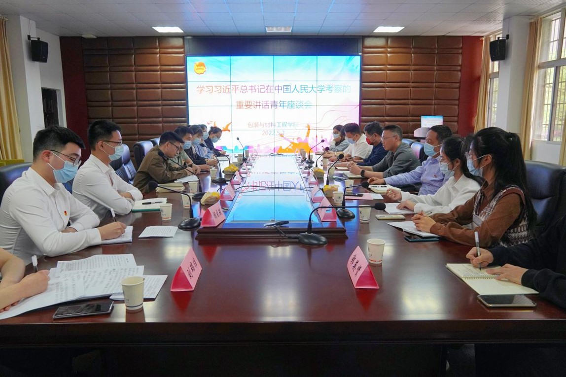 5月2日,包装与材料工程学院召开座谈会学习贯彻习近平总书记在中国人民大学考察时的重要讲话精神。校长蒋昌波出席,学院负责人、青年教师代表及青年学生代表等18人参加座谈会并分享学习心得。