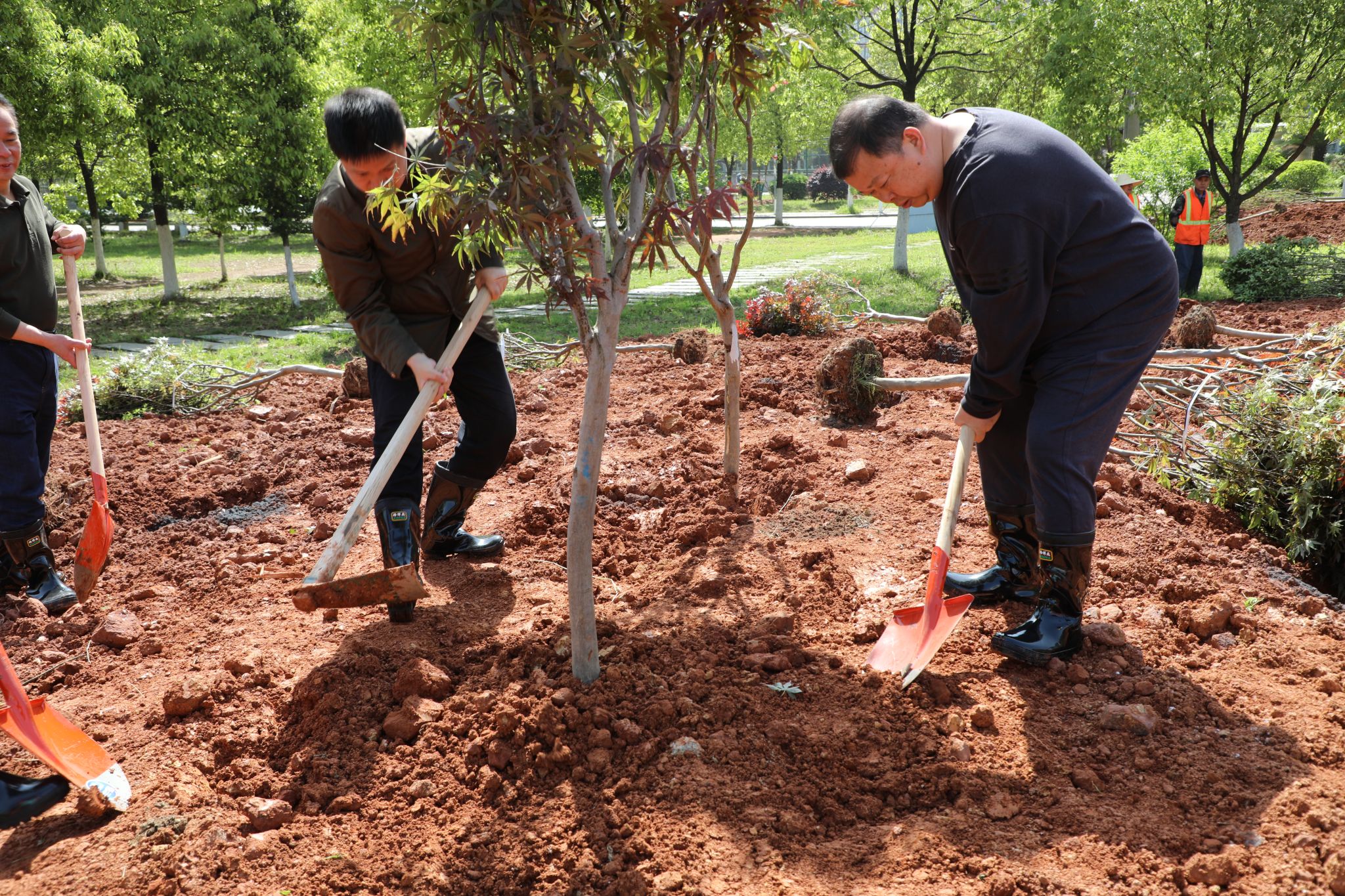 刘望与志愿者们亲切交谈。他号召大家行动起来,在校园种下片片绿色,大力倡导人人爱绿植绿护绿的文明风尚,共同建设人与自然和谐共生的美丽校园。