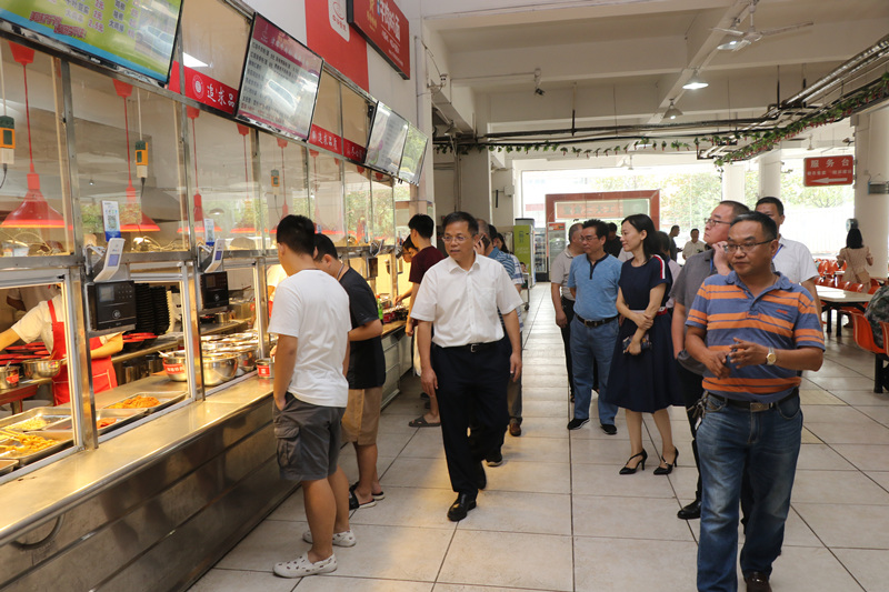 8月31日上午,由党委书记、校长谭益民带队,副校长罗定提、李可兴、李若梅一行来到学生宿舍、东苑食堂、崇学楼等地,就新学期开学保障和校园安全工作进行检查。