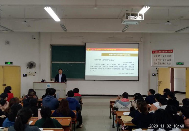 本节课由马克思主义学院黄磊老师讲授《思想道德修养与法律基础》。她声情并茂、用心用情讲授了《中国精神是兴国强国之魂》专题,课堂师生互动多、感染力强。