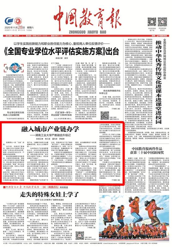 继中国教育报头版头条推出《钻进企业办大学》之后,11月28日,中国教育报头版再次以《融入城市产业链办学——德赢AC米兰官网产教融合升级记》为题,详细报道了德赢近年来产教融合升级发展取得的新成就。