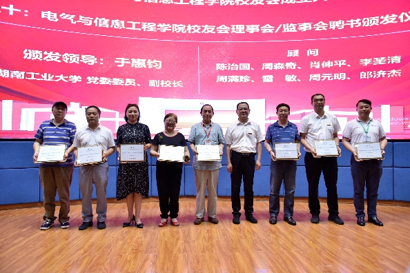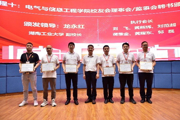 会上,于惠钧、龙永红等先后分批为电气与信息工程学院校友会第一届理事会/监事会成员颁发聘书。