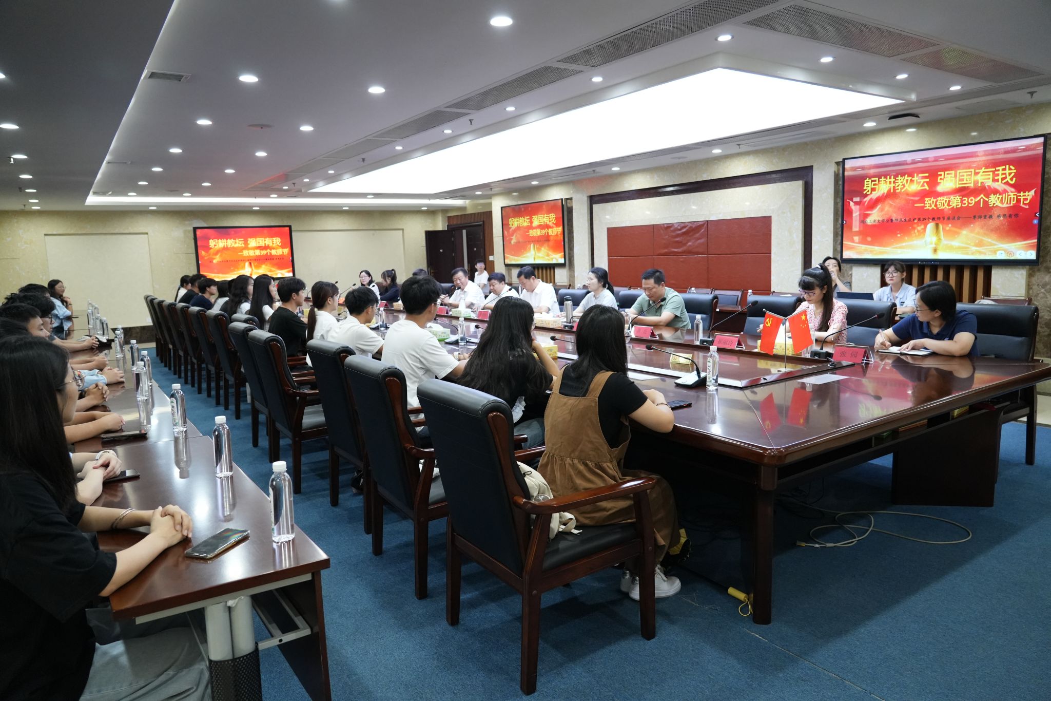师生围绕“躬耕教坛 强国有我”主题展开座谈,全国优秀教师刘亚云教授分享了自己40余年教学经历和感悟,并以“争、担、勤、恩”四个字勉励师范生,要以只争朝夕的心态努力学习,敢于担当作为,勤学苦练,且常怀感恩的心,努力成为一名优秀的人民教师。参加座谈的师范生积极发言,他们纷纷表示,感到学校对师范生培养越来越重视,各项设施越来越完善,对培养自己的教师给于了充分的肯定,送上了热烈的祝福,同时表示,自己一定全面提升教师素养,锻造扎实专业技能,立志成为一名好教师。