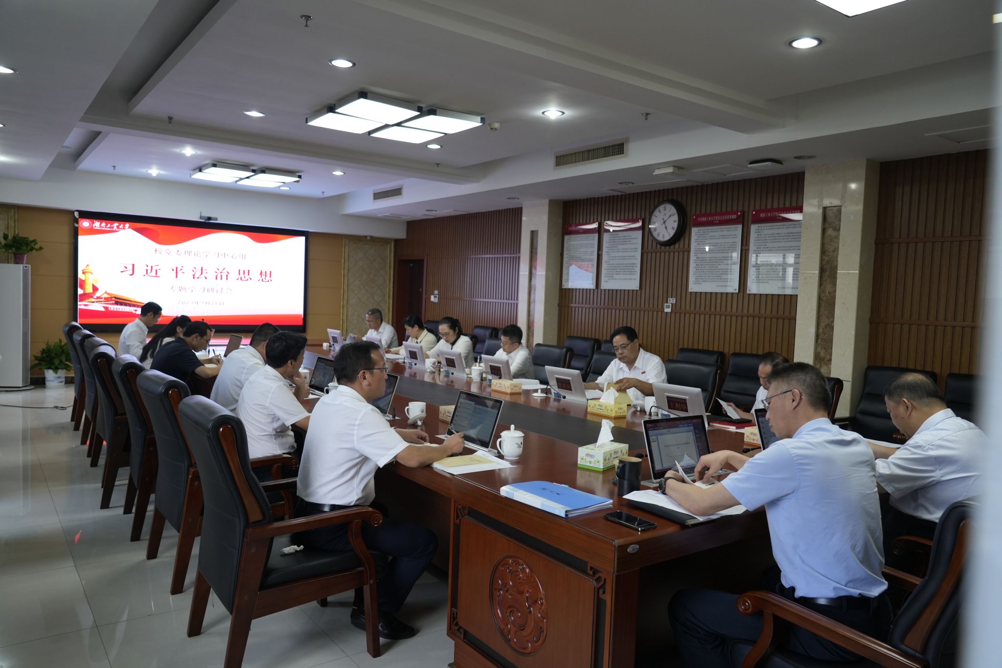 9月26日下午,校党委理论学习中心组开展2023年第十一次集体学习,专题学习习近平法治思想。党委书记刘望主持并作总结讲话,全体在家校领导参加学习,法学院党委班子成员列席旁听。