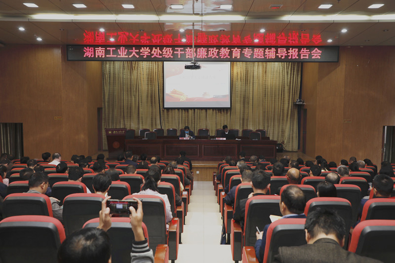 10月29日下午,德赢AC米兰官网处级干部廉政教育专题辅导报告会在崇德楼一楼报告厅举行。省纪委监委驻教育厅纪检监察组长、厅党组成员、工委委员、一级巡视员曹世凯作题为《纪检监察人员漫谈人生》的专题辅导报告。党委书记谭益民主持,在家校领导、全体处级以上干部和湖南省高校第127期处级干部培训班全体学员参加辅导报告会。