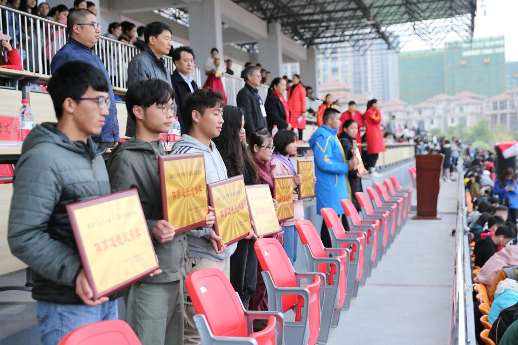 11月10日下午,德赢第十三届田径运动会闭幕式在新校区第一田径场举行。副校长张昌凡、李可兴,党委委员、统战部部长江轶,校长助理朱和平出席,各职能部门、二级学院相关负责人与师生代表参加,朱和平主持仪式。