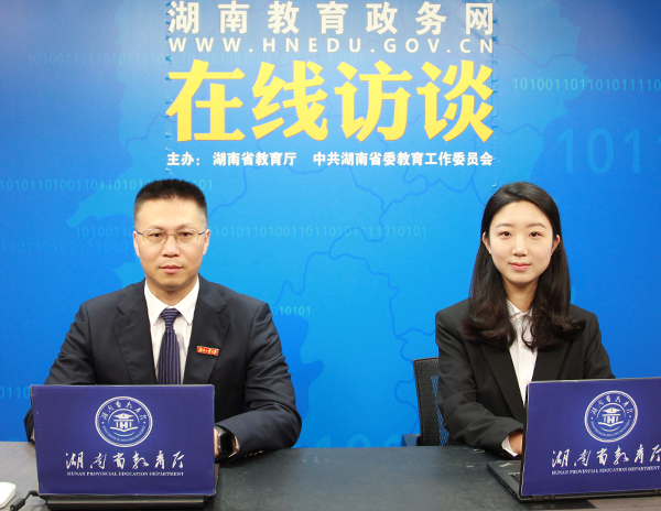 6月15日,校长蒋昌波应邀接受湖南教育政务网在线访谈,就“高等教育服务‘三高四新’战略定位和使命任务”这一主题,与广大网友在线交流。