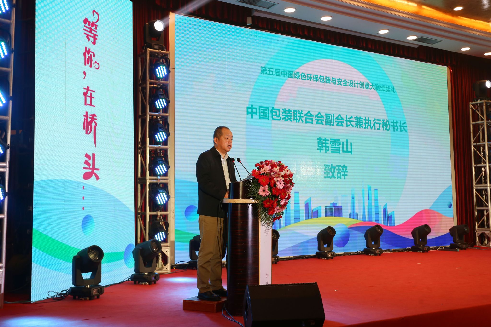 中国包装联合会副会长兼执行秘书长韩雪山代表中国包装联合会发表讲话。他指出,面对复杂多变的国际经济环境和越来越严峻的资源、环境压力,中国包装产业也急需向环保型的绿色包装产业转型。对产品包装而言,把环境保护融入产品包装设计中,是增加包装产品活力、延长包装产品生命周期的必然趋势;对企业而言,环保是一项关乎未来、必须坚持、同时需要可持续发展努力的重要活动,是一个企业发展壮大的必由之路。他强调,中国绿色环保包装与安全设计创意大赛的举办,有效地增强了社会、特别是包装设计工作者的生态文明、创意创新意识,有效推动了包装产业朝着更绿色、环保、资源节约和可持续方向发展,为环保做出了积极贡献。