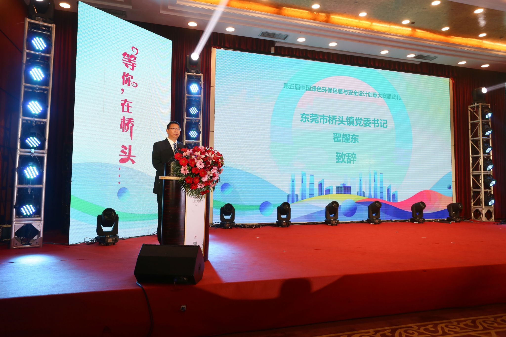 东莞市桥头镇党委书记翟耀东致辞,代表桥头镇委、镇政府,对大赛的成功举办表示热烈祝贺。他指出,中国绿色环保包装与安全设计创意大赛,是培养包装设计人才,深化产教融合,促进环保包装产业发展的全国性赛事。桥头镇汇聚了美盈森、汇林、力嘉、凯成、至美等一众行业优秀企业,更与德赢AC米兰官网等高等院校建立深厚合作关系,推动全镇包装行业产值突破190亿元,进一步擦亮了“中国环保包装名镇”的金字招牌。他表示,桥头镇将一如既往大力支持环保包装产业发展,全力为企业搭平台、解难题、拓市场、抢订单,推动环保包装产业向集群化高端化方向发展。希望德赢AC米兰官网等院校能继续加强人才支撑,深化镇校“产学研”合作,输送更多优秀人才来桥头创业发展。