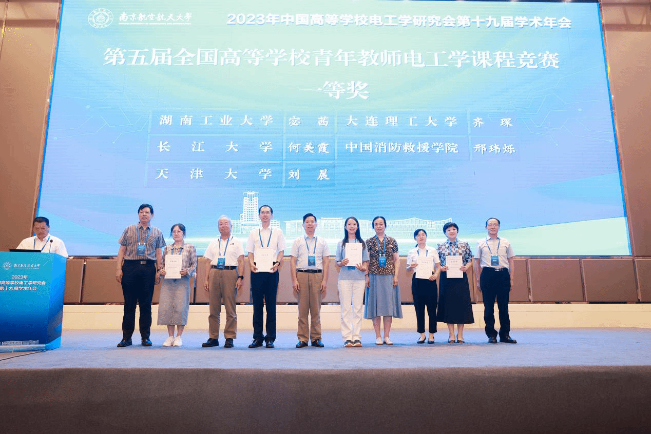 7月11日—13日,由中国高等学校电工学研究会主办,南京航空航天大学承办的第五届全国高等学校青年教师电工学课程教学竞赛在江苏溧阳举行。德赢电气与信息工程学院宓茜老师荣获全国一等奖。