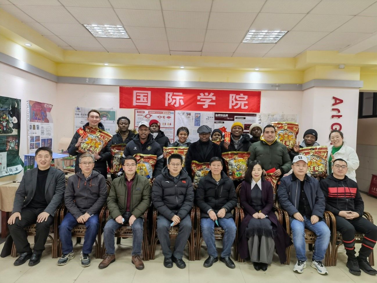 受疫情影响,留学生在寒假期间无法回国与亲人朋友团聚,为让留学生感受到学校大家庭的温暖,范晓阳、殷晓元分别代表学校向留学生送去了新春的问候和祝福。殷晓元发表致词,希望大家开开心心过年,趁此佳节好好体验中国传统文化,待回国后向家人朋友们宣传,更好促进跨国文化的融通交流,同时也祝愿同学们在新的一年里学习进步、心想事成、兔年大吉。随后校领导还代表学校向留学生发放了新年红包和旺旺大礼包。