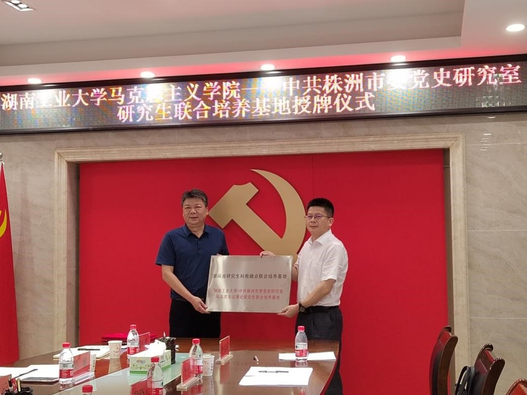 6月29日下午,“德赢AC米兰官网马克思主义学院-中共株洲市委党史研究室”研究生联合培养基地授牌仪式在中共市委党史研究室(市地方志编纂室)会议室举行,双方就共建研究生培养基地进行座谈交流。