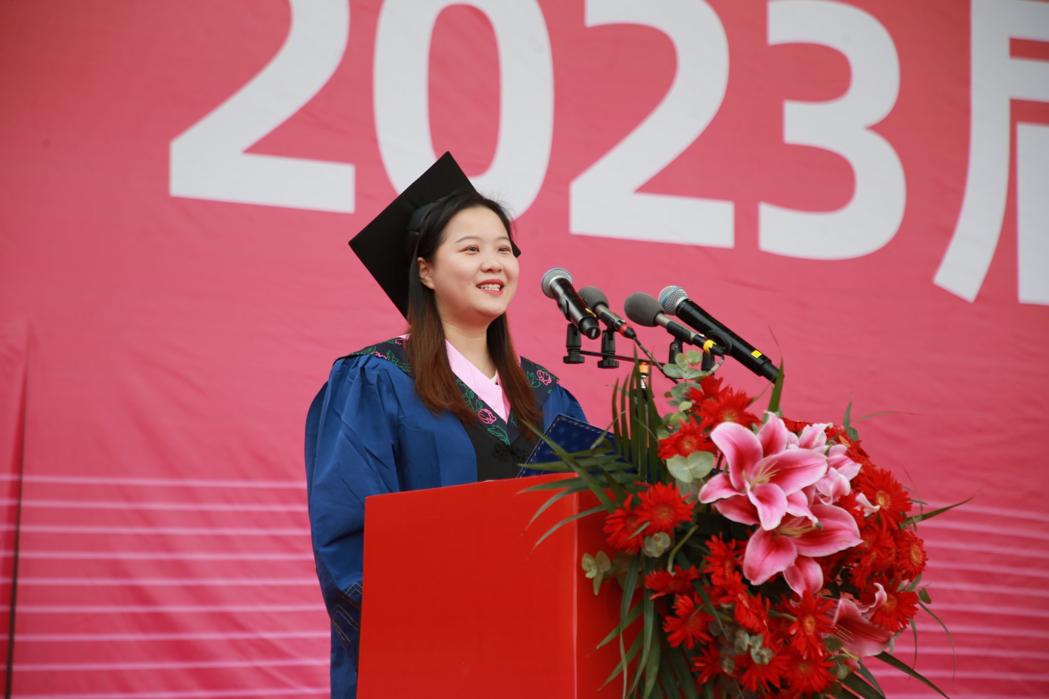 典礼上,副校长佘朝文受校长蒋昌波委托,代表学校向圆满完成学业,开启新的人生旅途的毕业生表示热烈祝贺,向指导、培育他们的父母和老师表示衷心感谢。他表示学校经历跨越式的蓬勃发展,全体师生参与了三年的同心抗疫,毕业生们也经历蜕变式的破茧成蝶。他寄语广大毕业生:要秉持理性,坚守初心,将所学所思变成解决现实问题的方法和路径,用理性的光辉驱散谬误的迷茫,用科学的思维去发现未来,用智慧的力量去引领新的时代。要加强学习、丰盈自身,不断学习各种新思想新理念新技术,努力充实自身的知识库,提升自身技能值。要踔厉奋发、勇毅前行,保持敢为人先的豪气、革故鼎新的锐气、创新发展的勇气,把个人奋斗成才与国家发展、民族进步融为一体,为全面建设社会主义现代化强国、实现中华民族伟大复兴中国梦贡献自己的青春力量。