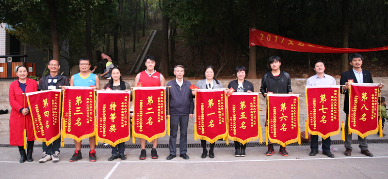 闭幕式上,与会领导、嘉宾为获奖单位颁发了锦旗。体育学院代表队获得特等奖,计算机学院代表队、电气学院代表队、机械学院代表队、机关代表队、包材学院代表队分获四到八名。