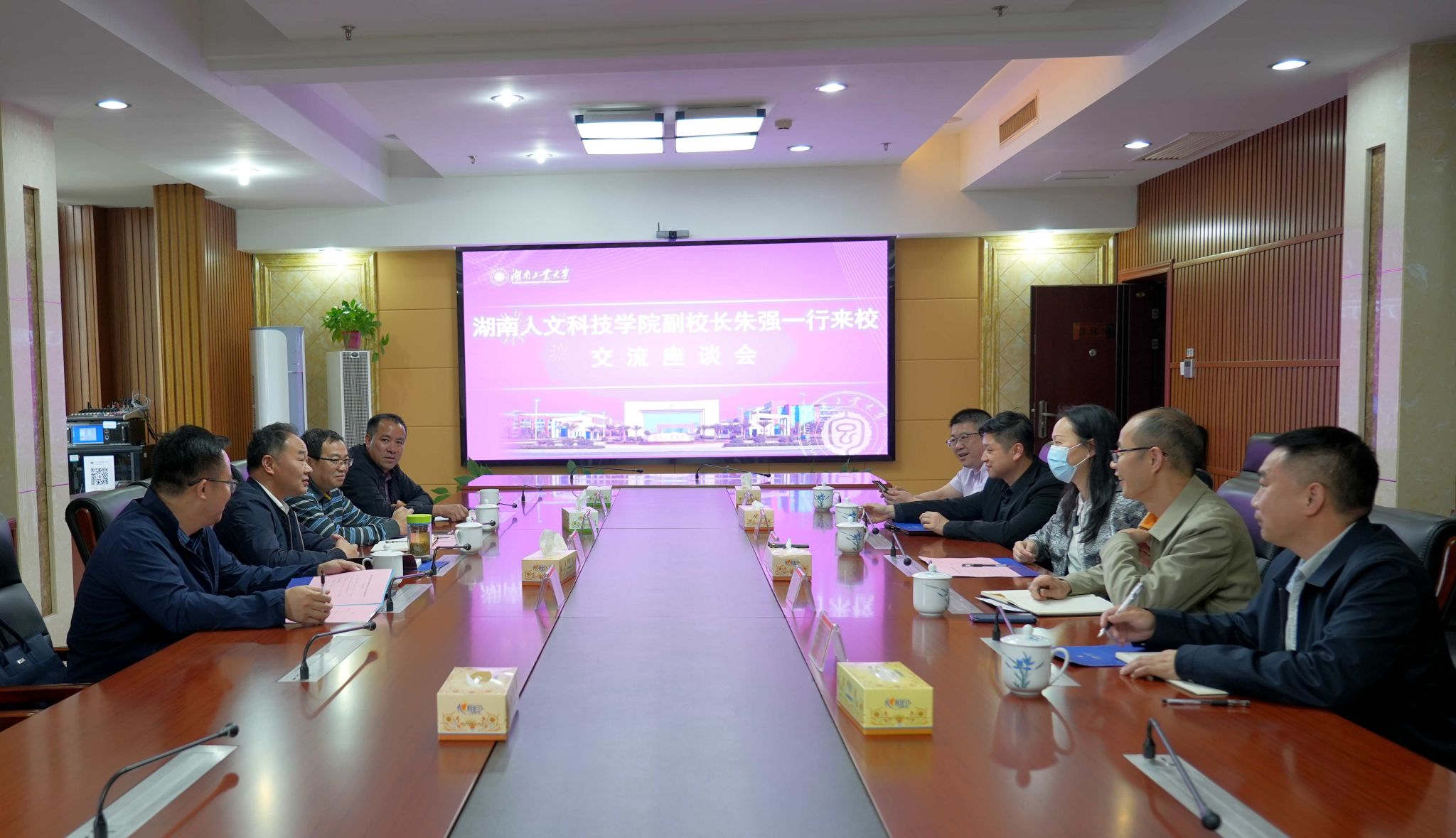 5月22日下午,湖南人文科技学院副校长朱强一行四人来校调研交流。副校长李若梅出席,财务处、科学技术处、社会科学处、继续教育学院相关负责人参加会议。