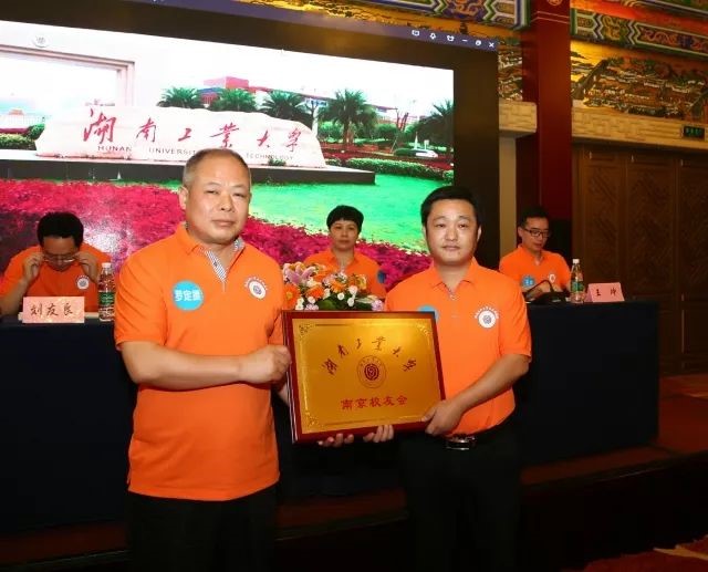 罗定提为南京校友会授牌,学校相关人员为校友会理事成员颁发了聘书。
