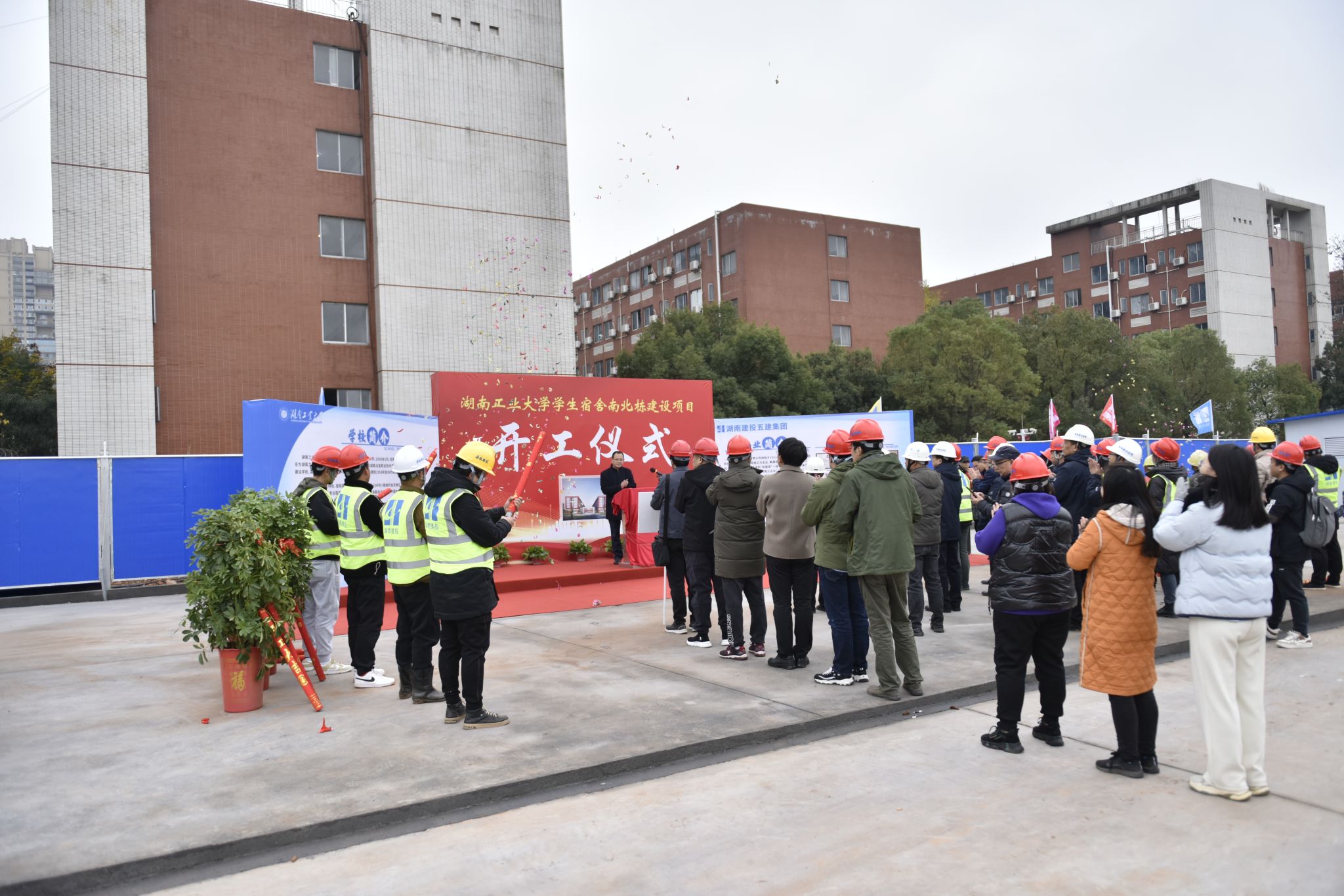 于惠钧讲话。他表示学生宿舍南北栋项目开工建设,贯彻落实了省委省政府关于大力改善高校办学条件,扩大优质高等教育资源供给的决策部署。学校积极筹措资金,想方设法改善办学条件,优先筹划学生宿舍建设,全面提升教育服务能力。他要求各参建单位,必须秉持对教育事业、对全社会高度负责的态度,强化时间观念和效率意识,坚持高质量建设,严标准管理,高效率施工,以一流的工作水准,建成质量上乘的放心工程、样板工程、品牌工程。