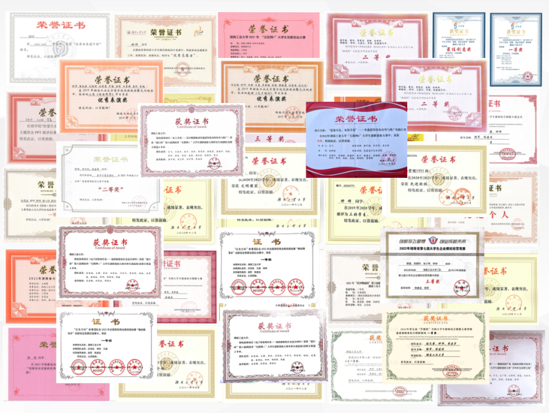 钟帅积极参与省部级核心赛事,将竞赛项目转化为高水平的科研成果,获得了国家级、省级竞赛奖励19项,被湖南省教育厅评为“省级优秀创新创业毕业生”。