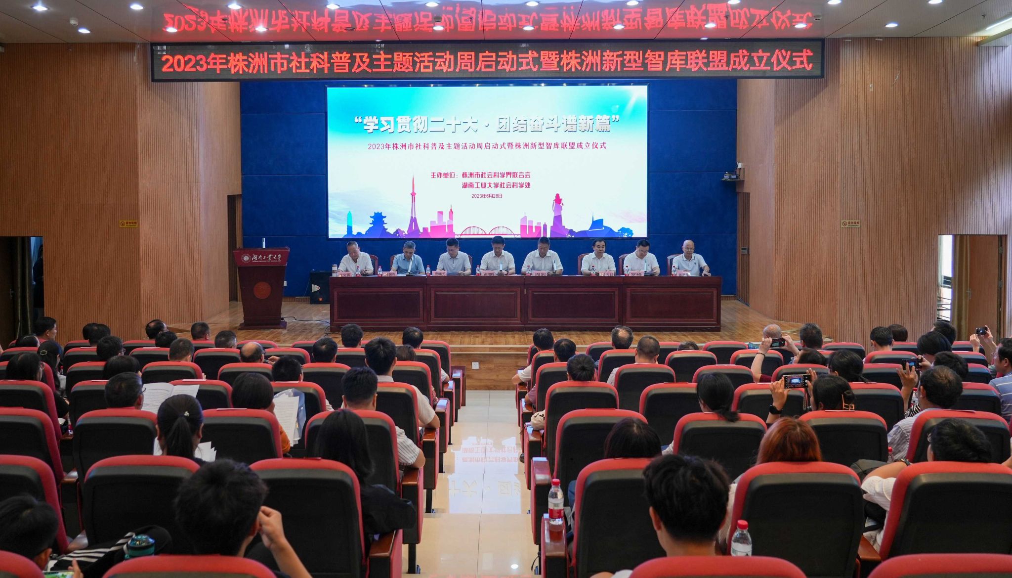 市政府副市长蒋湘晖同志为株洲新型智库联盟牵头单位市社科联授牌,宣布2023年株洲市社会科学普及主题活动周启动。