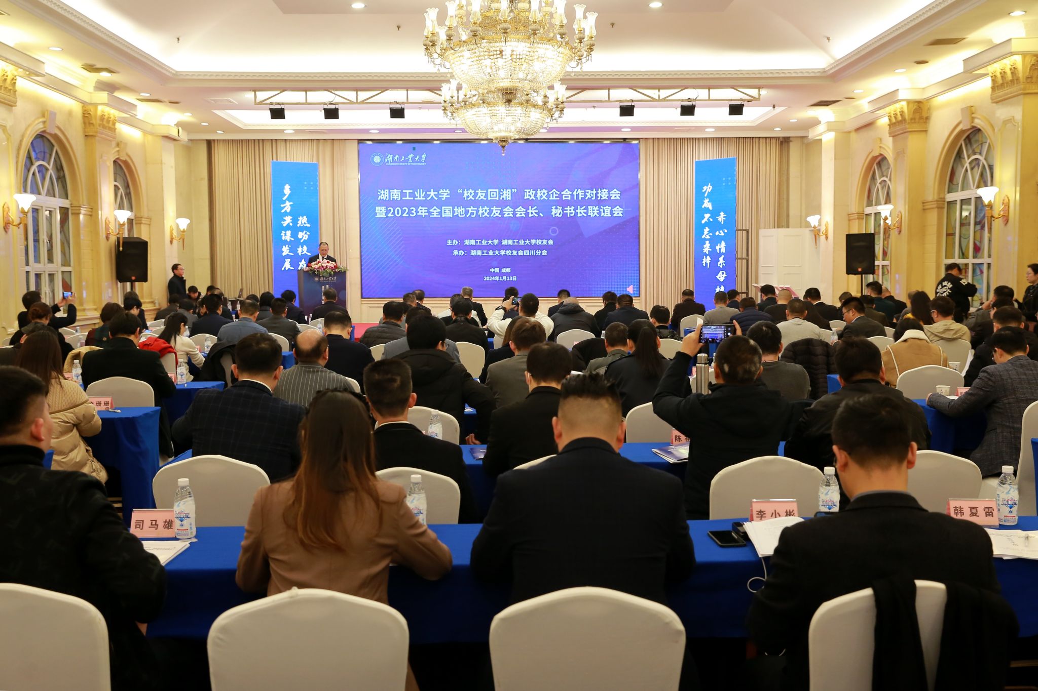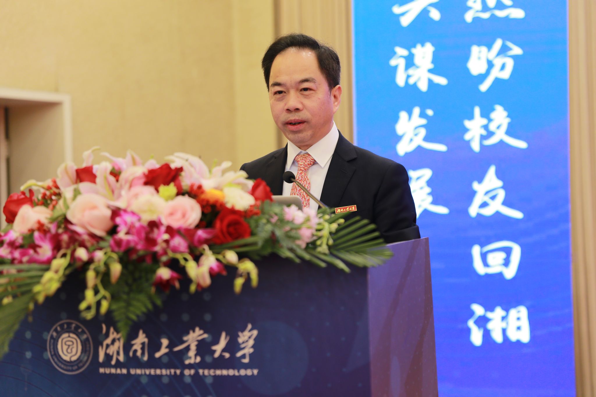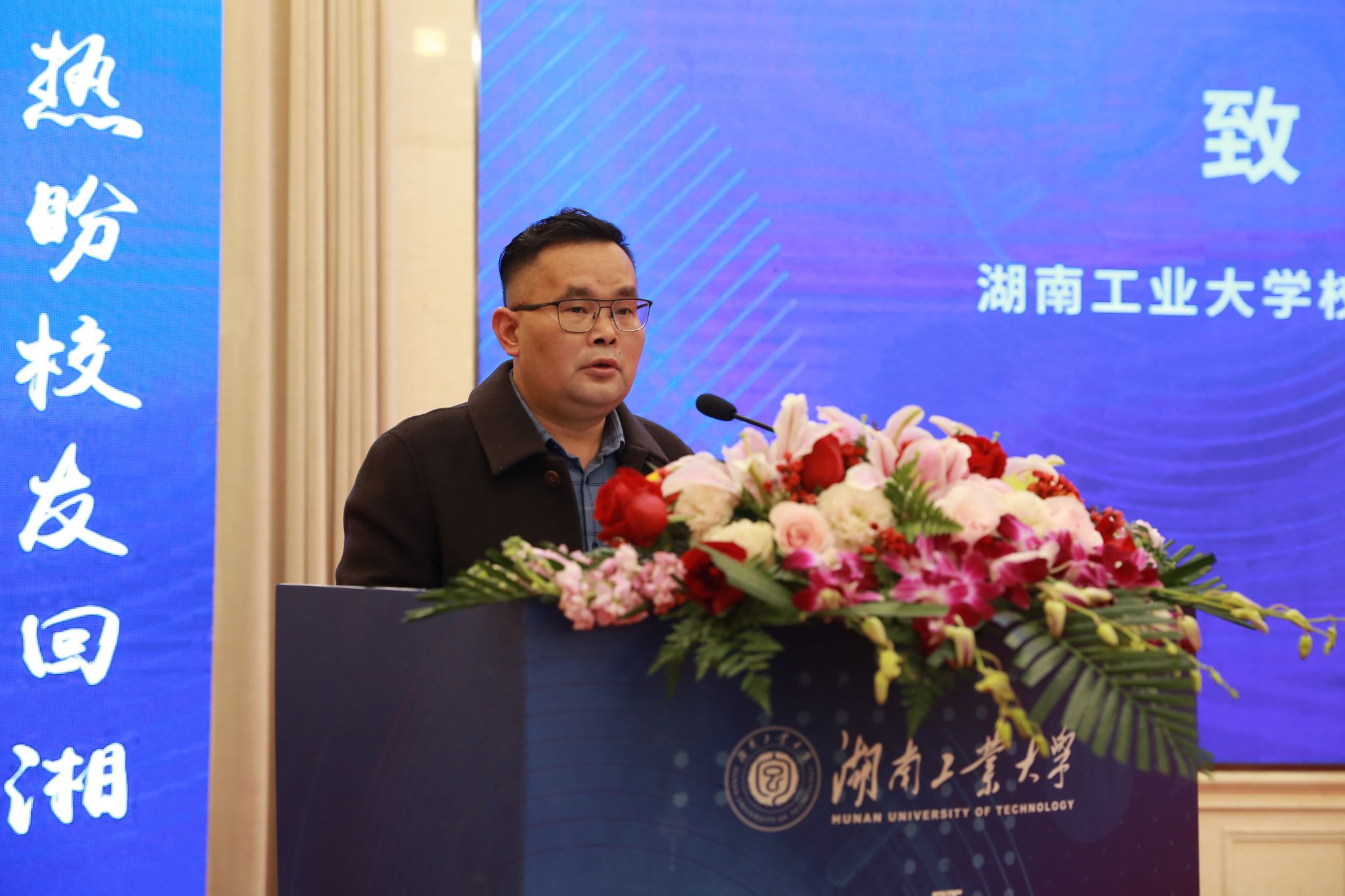 蒋昌波代表学校致辞,向各位领导和校友的到来表示欢迎和感谢。他表示,本次会议不仅仅是总结和部署工作,更重要的是落实好湖南省委“校友回湘”的重要战略决策,既是一次省委决策的宣讲会,也是一次“校友回湘”工作的研讨会,更是一次政校企合作项目的对接会。希望通过本次会议,能够引导广大校友和校友企业进一步深化“回湘”情感、坚定“回湘”信念,从人才、科技、项目、产业、教育等方面发挥优势、导入项目,支持现代化新湖南建设尤其是株洲“制造名城”培育,大力彰显湖南工大校友群体的社会担当。同时,期待通过本次会议,对政府、学校、校友三者之间构建奋斗共同体、利益共同体和命运共同体进行深入研讨,探索出具有湖南工大特色的“校友回湘”新思路、新机制和新模式。