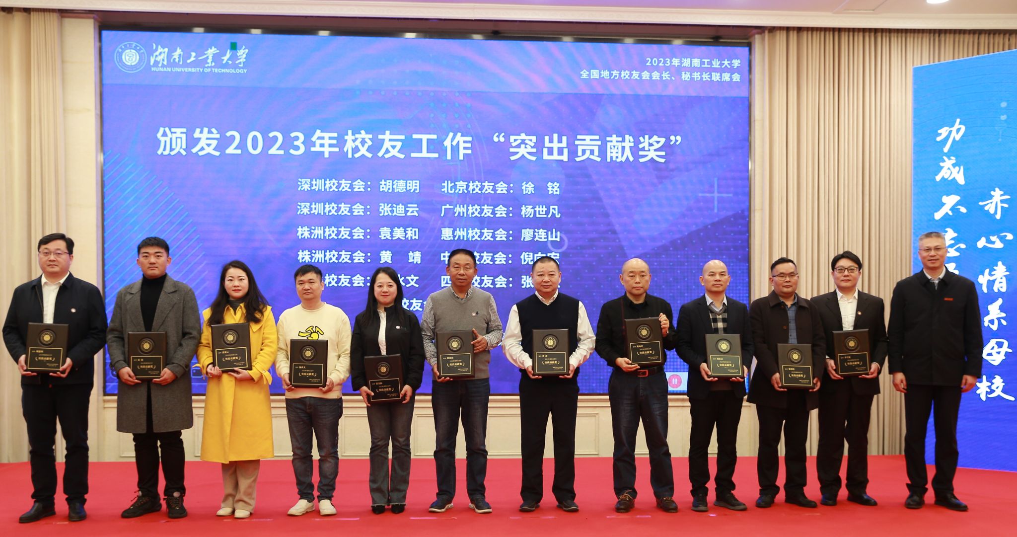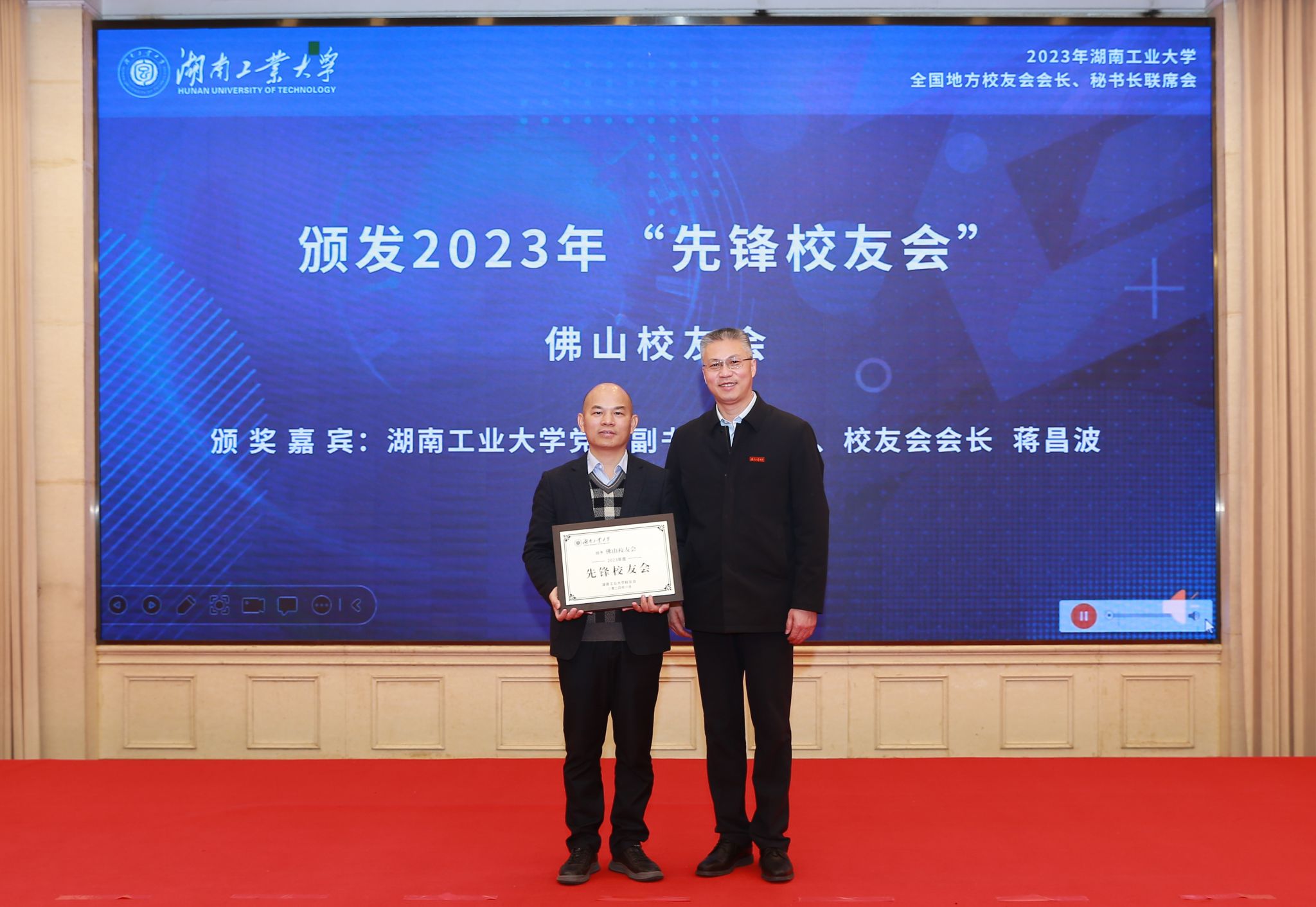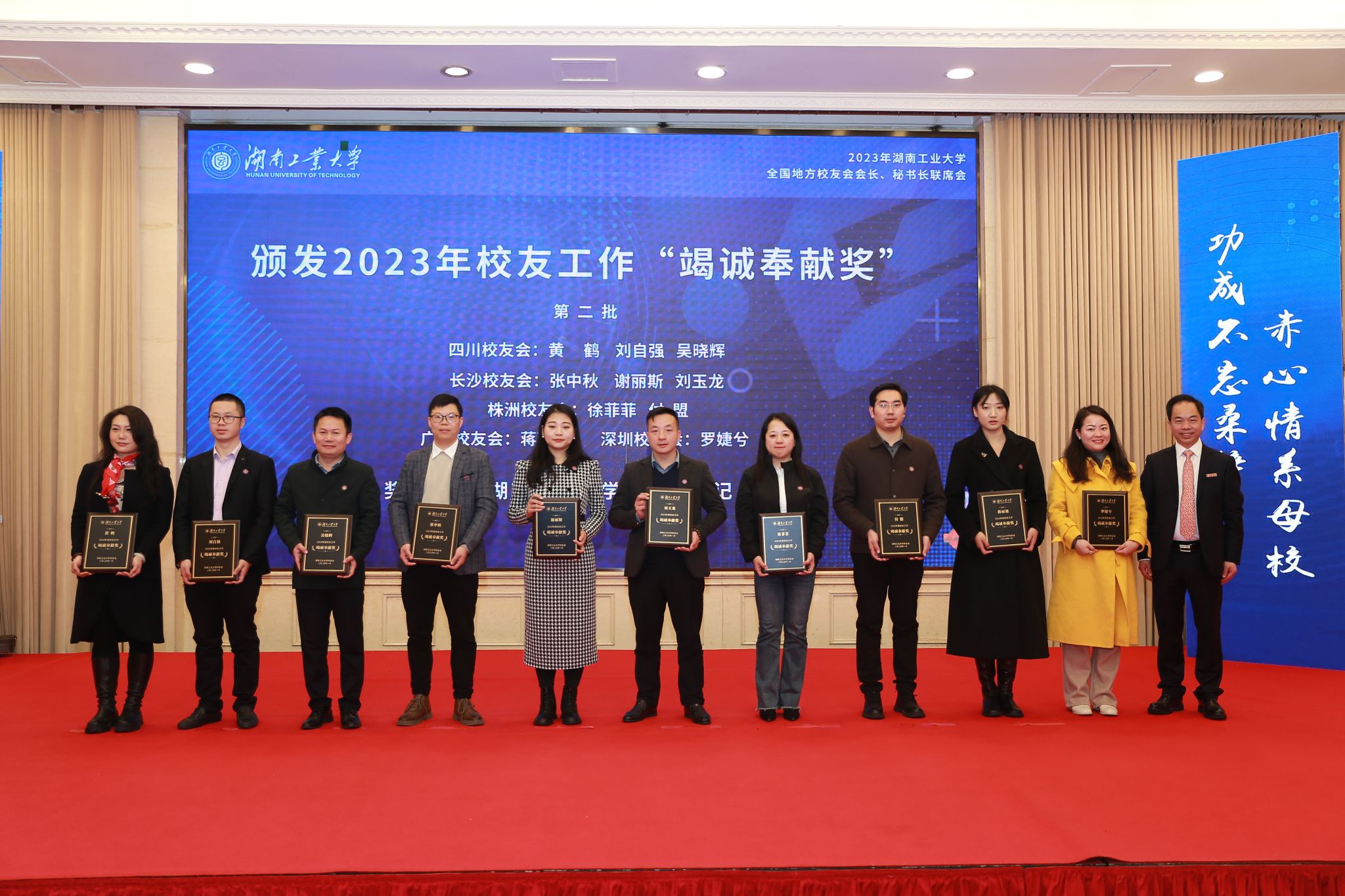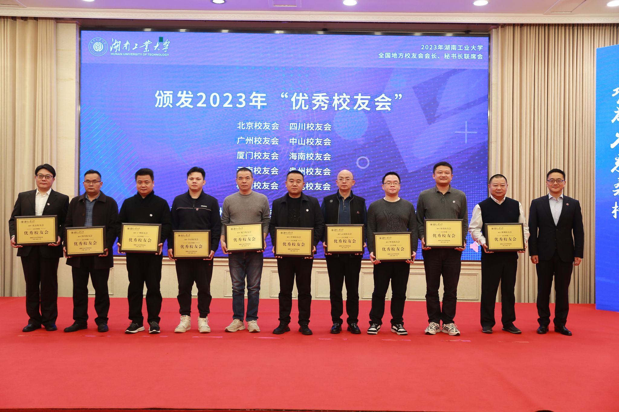 王利华宣读《关于表彰 2023 年地方校友会先进集体与先进个人的决定》,佛山校友会获“先锋校友会”荣誉称号、北京校友会等 10 个地方校友会获“优秀校友会”荣誉称号,胡德明等 11 位校友获“校友工作突出贡献奖”,刘兵等 52 位校友获“校友工作竭诚奉献奖”。蒋昌波、刘亚亮、王利华为获奖集体和个人颁奖。