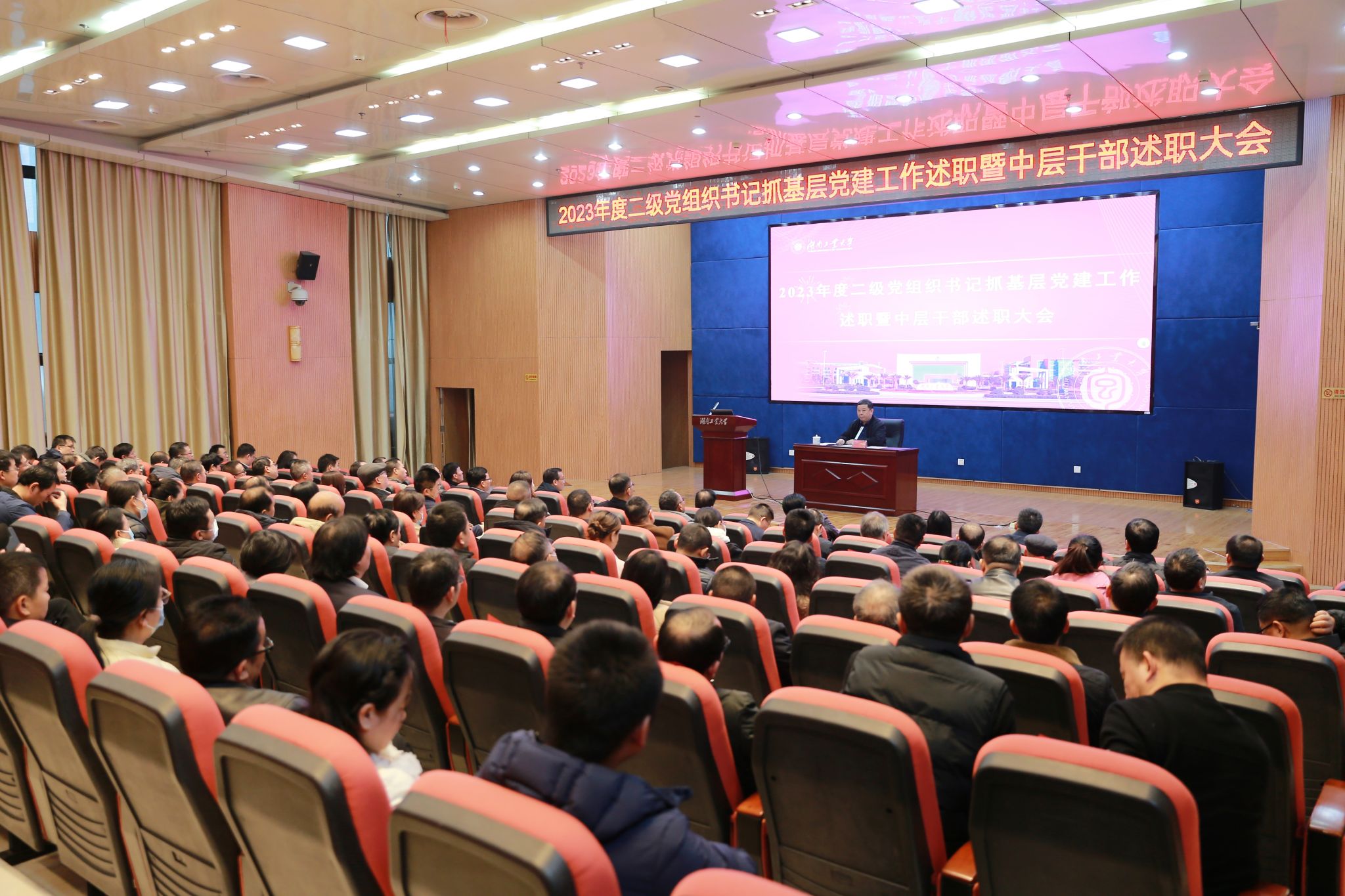 1月16日,德赢2023年度二级党组织书记抓基层党建工作述职暨中层干部述职大会在崇德楼一楼报告厅召开。党委书记刘望主持会议。全体在家校领导、各单位主要负责人,博士教授、民主党派、一般干部和离退休老干部代表参加会议。