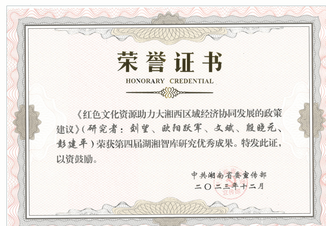 经单位推荐、资格审查、专家评审、网上公示等环节,德赢刘望教授牵头完成的《红色文化资源助力大湘西区域经济协同发展的政策建议》获评第四届湖湘智库研究优秀成果。近年来,德赢紧紧围绕服务省委省政府决策,精心组织一批社科专家及时开展对策研究,积极建言献策,产出的多项优秀成果被省部级领导批示肯定或被相关部门采纳应用,取得了良好的社会效果,为我省加快实现“三高四新”美好蓝图贡献了湖工大智慧。
