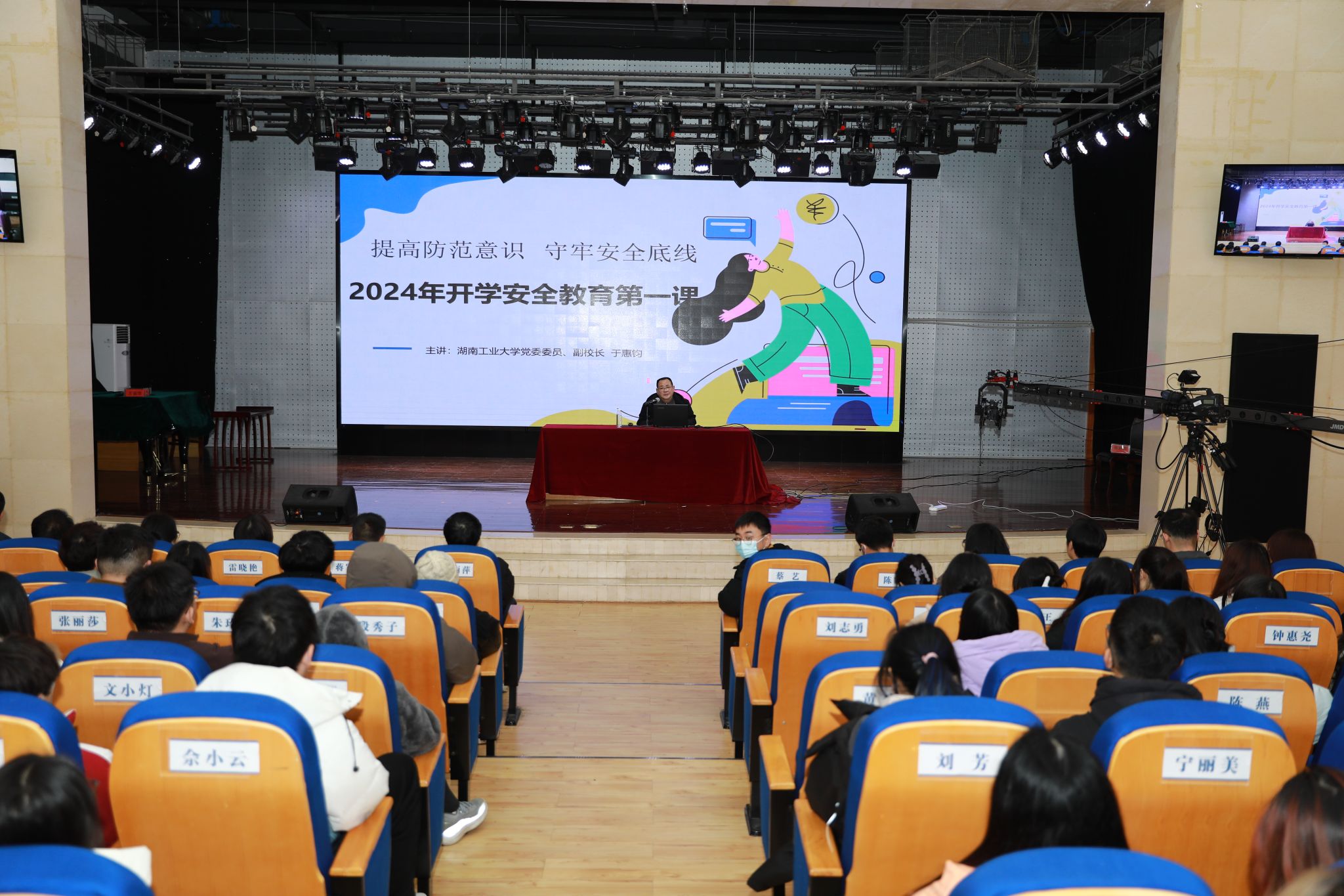 于惠钧以“提高防范意识,守牢安全底线”为题,为学生授课。他引用了寒假期间全国各地发生的校园安全事故案例,强调了安全教育的重要性和紧迫性。他要求全校师生必须树立“预防为主、生命至上”的安全意识,将安全作为一切活动的首要前提。结合省安委办相关文件精神,他从交通安全、消防安全、网络安全、国家安全等几个方面,深入为大家分析了安全事故产生的主要原因、可能产生的后果以及主要预防措施,希望全校师生能够认真学习、主动作为。他强调,高校是维护国家安全与社会稳定的重要一环。要始终贯彻落实国家总体安全观,全力维护国家政治安全和社会大局稳定。学校将始终坚持“人民至上、生命至上”理念,严格落实校园安全主体责任,加强校园安全隐患排查整治与安全知识教育、培训与演练,切实提升全校师生的安全防范技能与应急逃生本领。他希望,全体学生能够肩负起时代赋予的重大历史使命,不断增强安全知识与心理素养、提升安全防范能力与应对能力,为维护校园安全、国家安全贡献自己的力量!