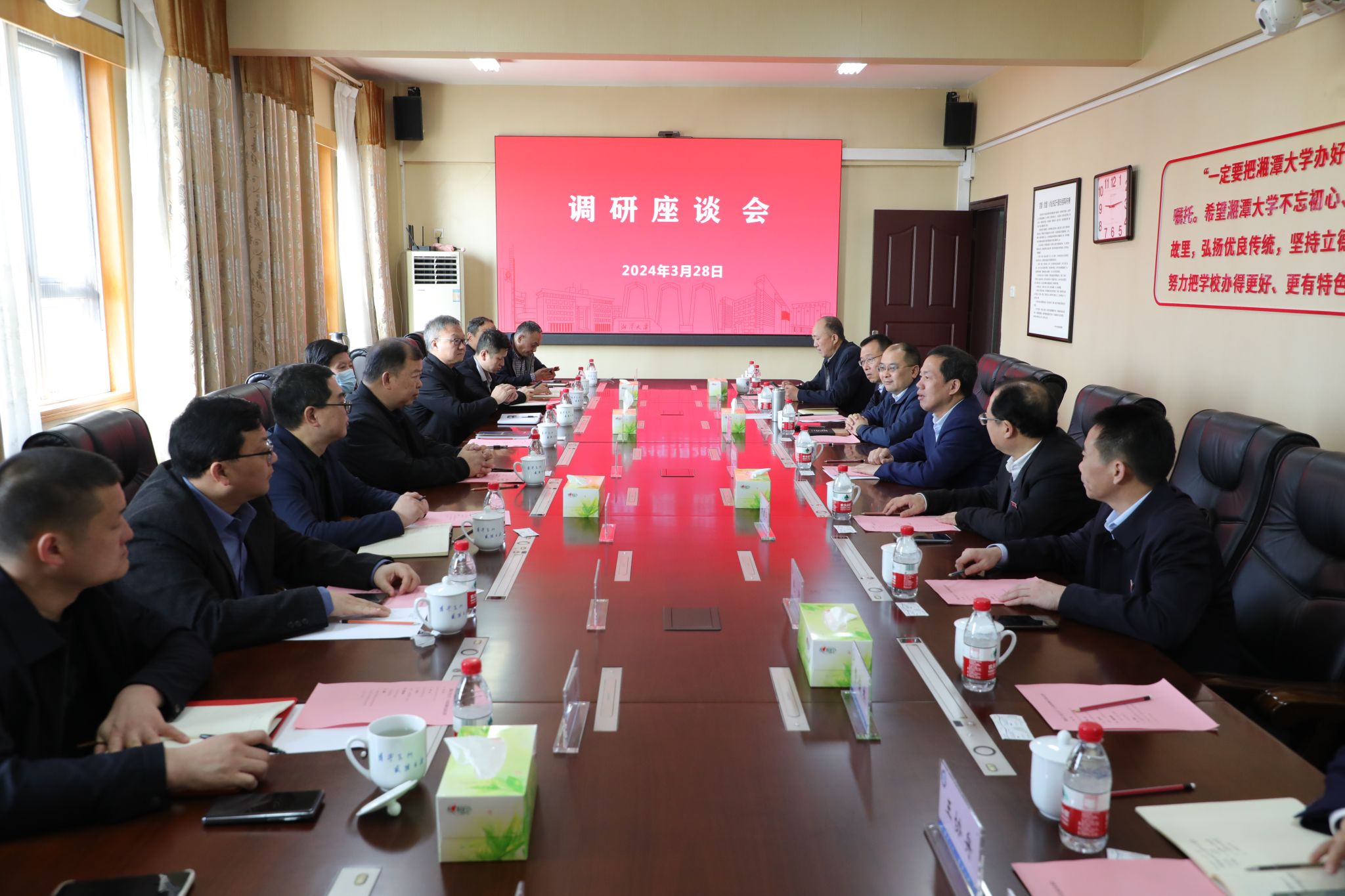 3月28日,校党委书记刘望、副校长范晓阳一行赴湘潭大学,交流学科与学位点建设、科技成果转化等情况。湘潭大学党委书记刘起军等出席座谈交流会。