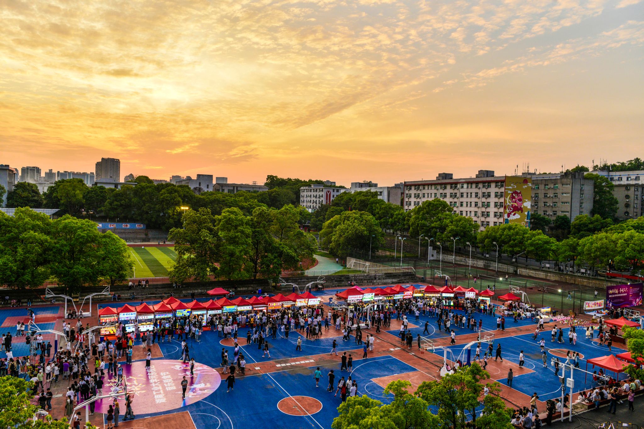 同时,网红小吃摊位在校园内持续运营至深夜,展现了“夜经济+新消费”的独特魅力。此外,湖南广电暑期实习生招聘活动、2024年毕业生春季校园双选会以及“一校一书”读书日等主题活动也在同步进行。